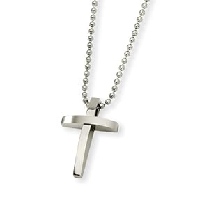 Men's Stainless Steel Brushed and Polished Cross NecklaceBling Jewelry Mens Stainless Steel 3mm Beaded Ball Chain Necklace 18 in. 20 in. 22 in. 24 in. 30 in