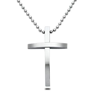 Update your style with a sleek cross necklace. Jewelry is crafted of sturdy stainless steel and capabilities a high polish cross pendant. Cross pendant measures 36.5 mm long x 24mm wide and hangs in a 23 inches bead chain necklace. Great for veryday wear.