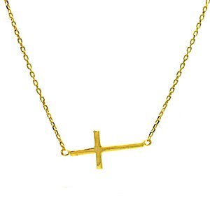 Gold Over Sterling Silver Sideway Cross Necklace. (measurement: 22.1mm x ten.1mm)